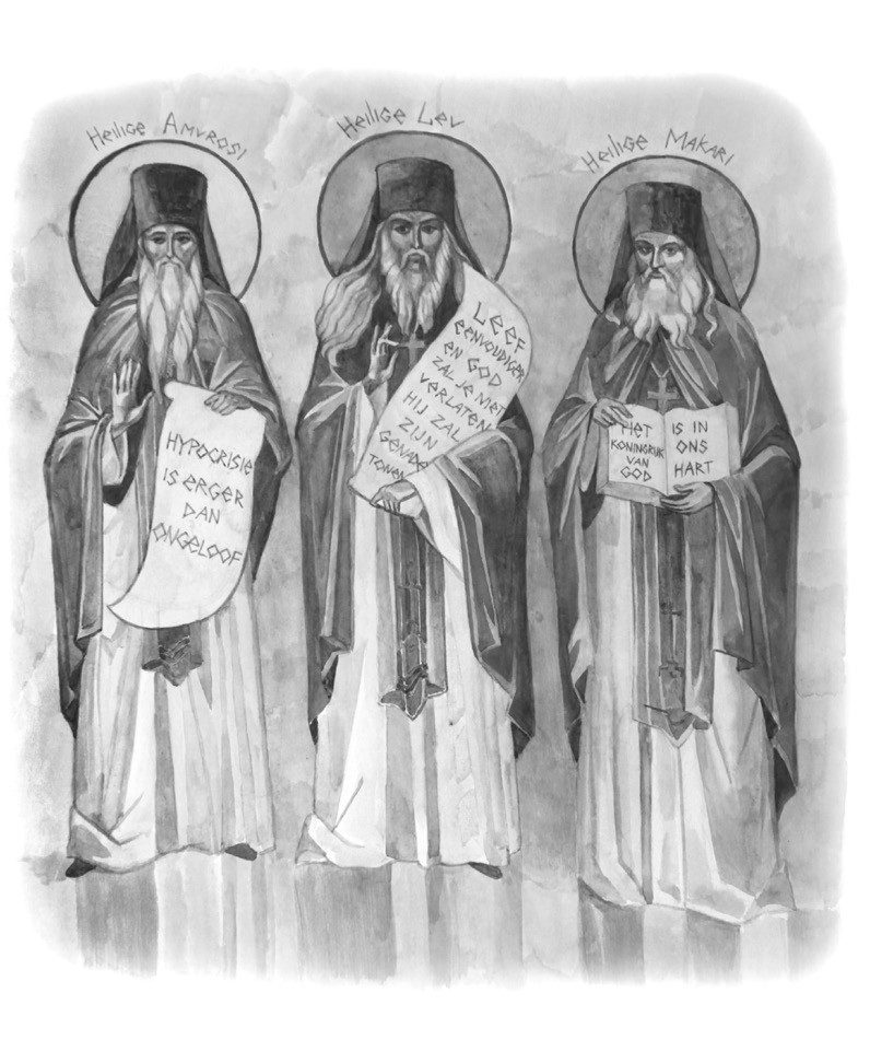 Het is belangrijk om het boekje aantrekkelijk voor jongeren te maken. Daar zorgden illustrator Anastasia Akhnina en vormgever Serafima Yavarouskaya voor. ‘Anastasia heeft prachtige schilderijen in aquarel gemaakt, geïnspireerd op de bestaande Byzantijnse icoonschilderkunst en mozaïeken. Ze heeft ook een illustratie van de kalender van het kerkelijk jaar gemaakt: tekeningen van de twaalf grote feesten met de namen en data van de feestdagen. Die vind je helemaal op het einde van het boekje.’
